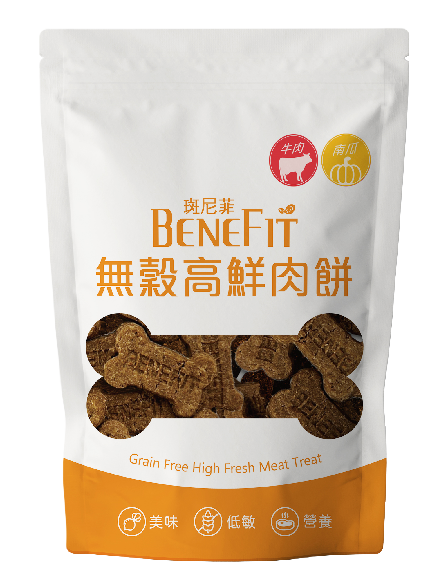 牛肉 + 南瓜 ► 重量:150g 成分介紹 ♦ 主要原料:鮮牛肉(50%)、豆類(黃豆、青豆、白豆)、木薯纖維、地瓜、南瓜、棕櫚油、甜菜纖維 ♦ 營養成分:蛋白質30%↑、粗脂肪25%↑、粗纖維4%↓、灰分10%↓、水分8%↓ 卡路里:4370Kcal/kg